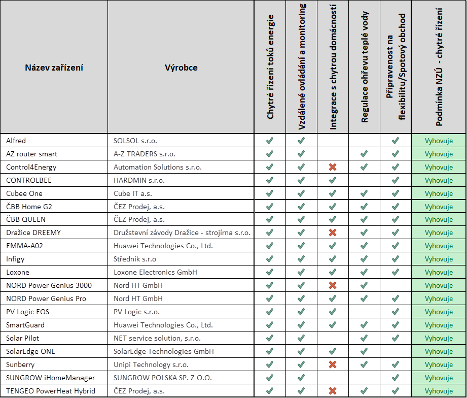 Seznam zařízení, která splňují podmínky pro získání vyšší dotace (poslední aktualizace seznamu proběhla dne 21.8.2025):